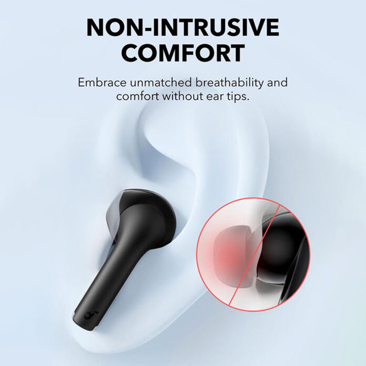 ایرپاد anker k20i دارای طراحی ارگونومیک و جذاب است که به راحتی در گوش قرار میگیرد و در اثر استفادههای طولانی مدت به هیچ عنوان گوش را خسته نمیکند.